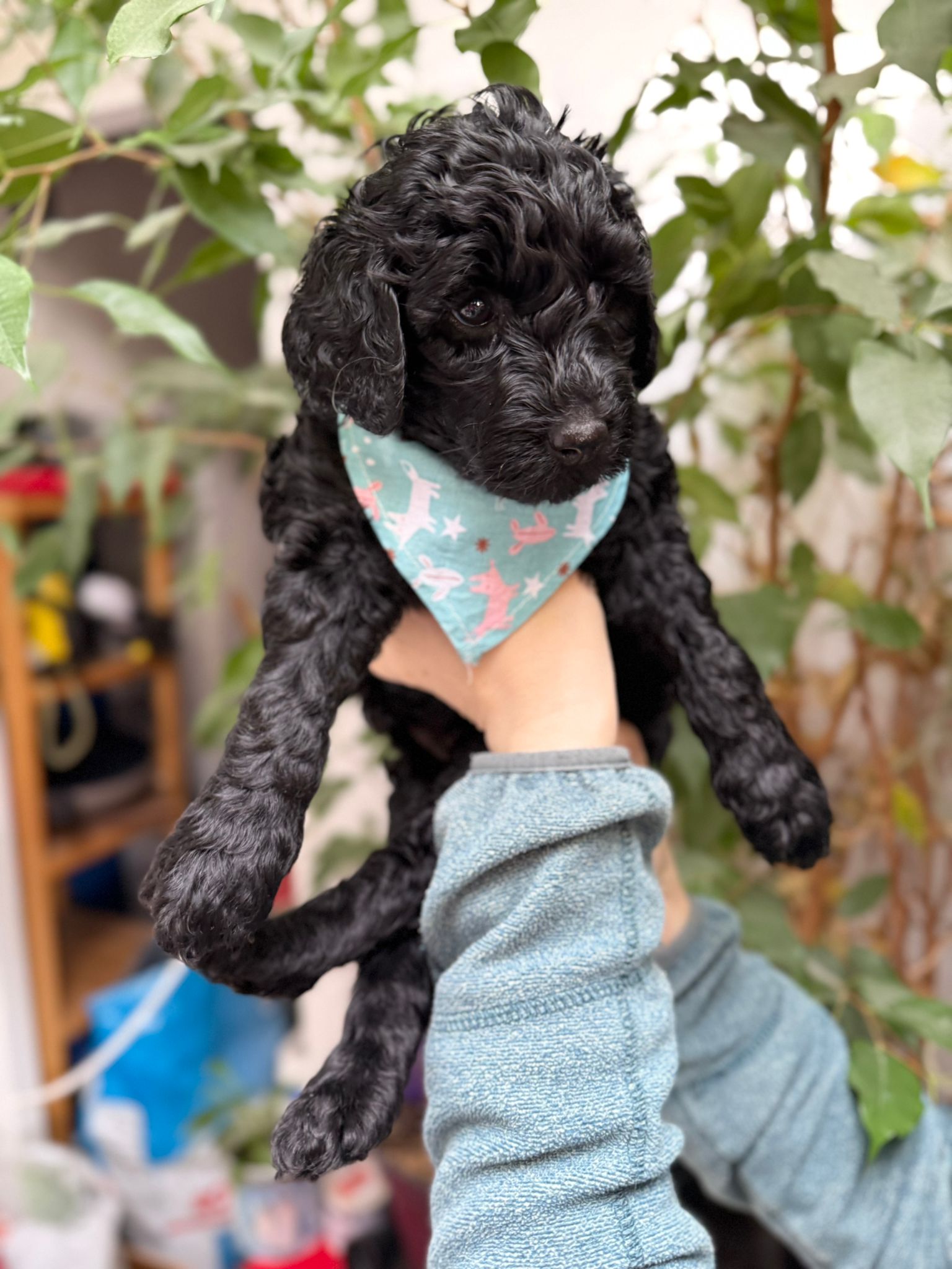 Miss Orange, also known as Sky, is an absolutely stunning dark brown puppy with a gorgeous wavy fleece coat and an equally beautiful character. She has a wonderfully serene and gentle nature, yet at the same time brings such a joyful, playful energy that makes her truly special.