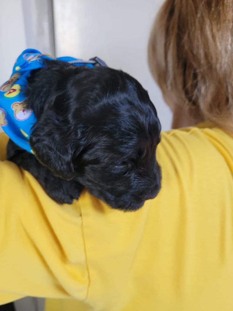 Mr Silver, also known as Teddy, is a fantastic little black puppy with a beautiful, soft fleece coat, a charming white spot on his chest and a truly special presence. His calm, serene nature is immediately noticeable, bringing a sense of ease and comfort to everyone around him.