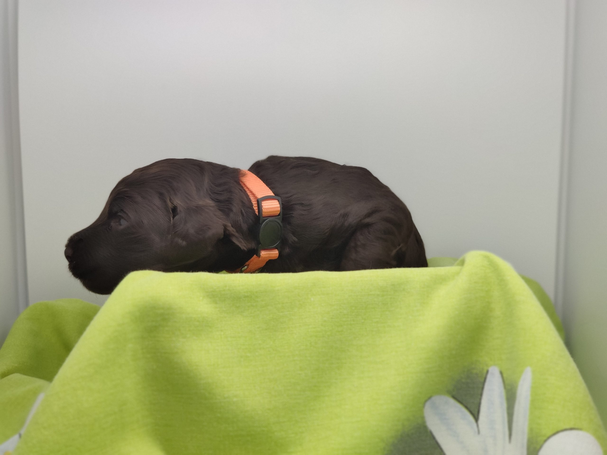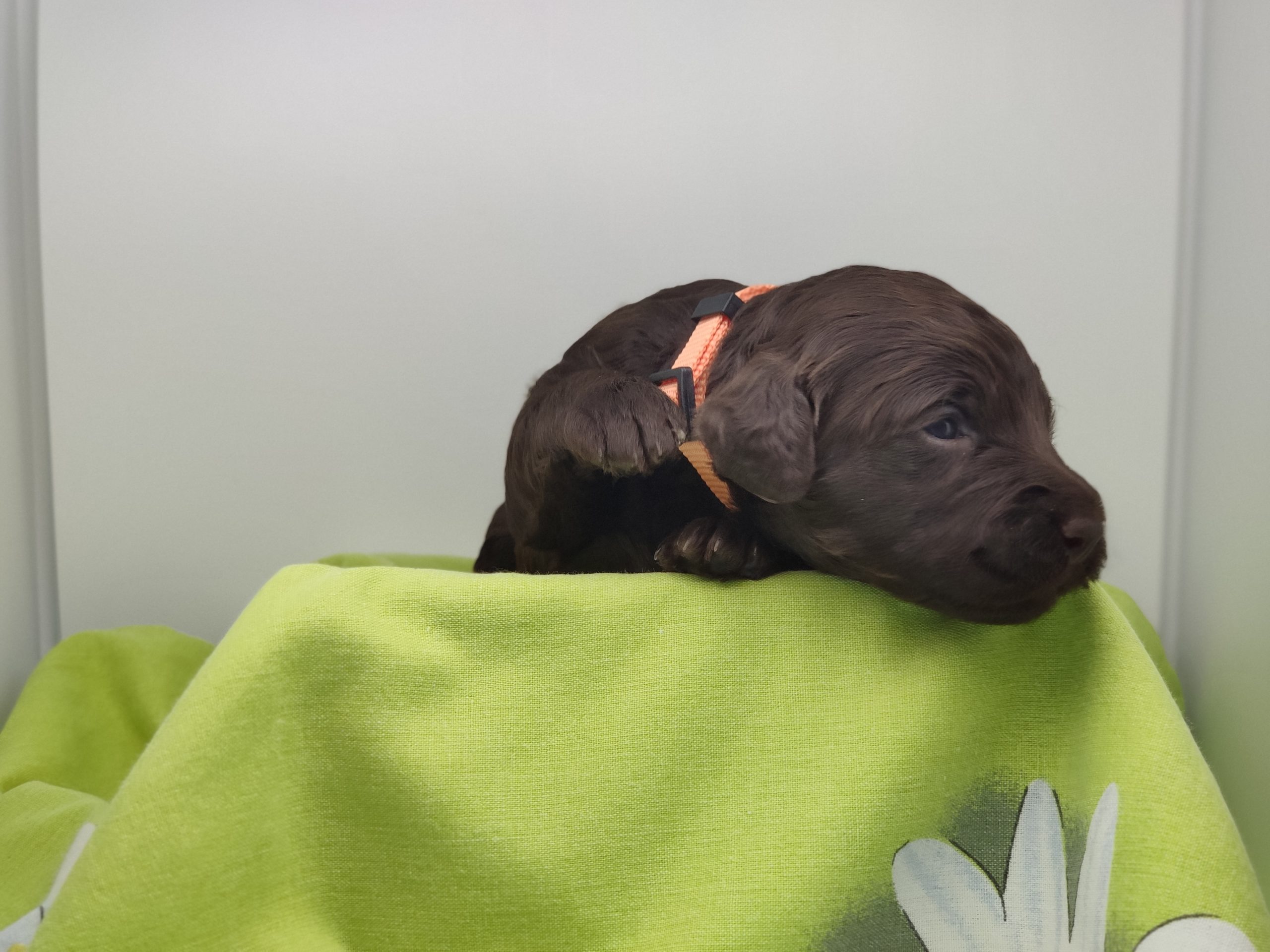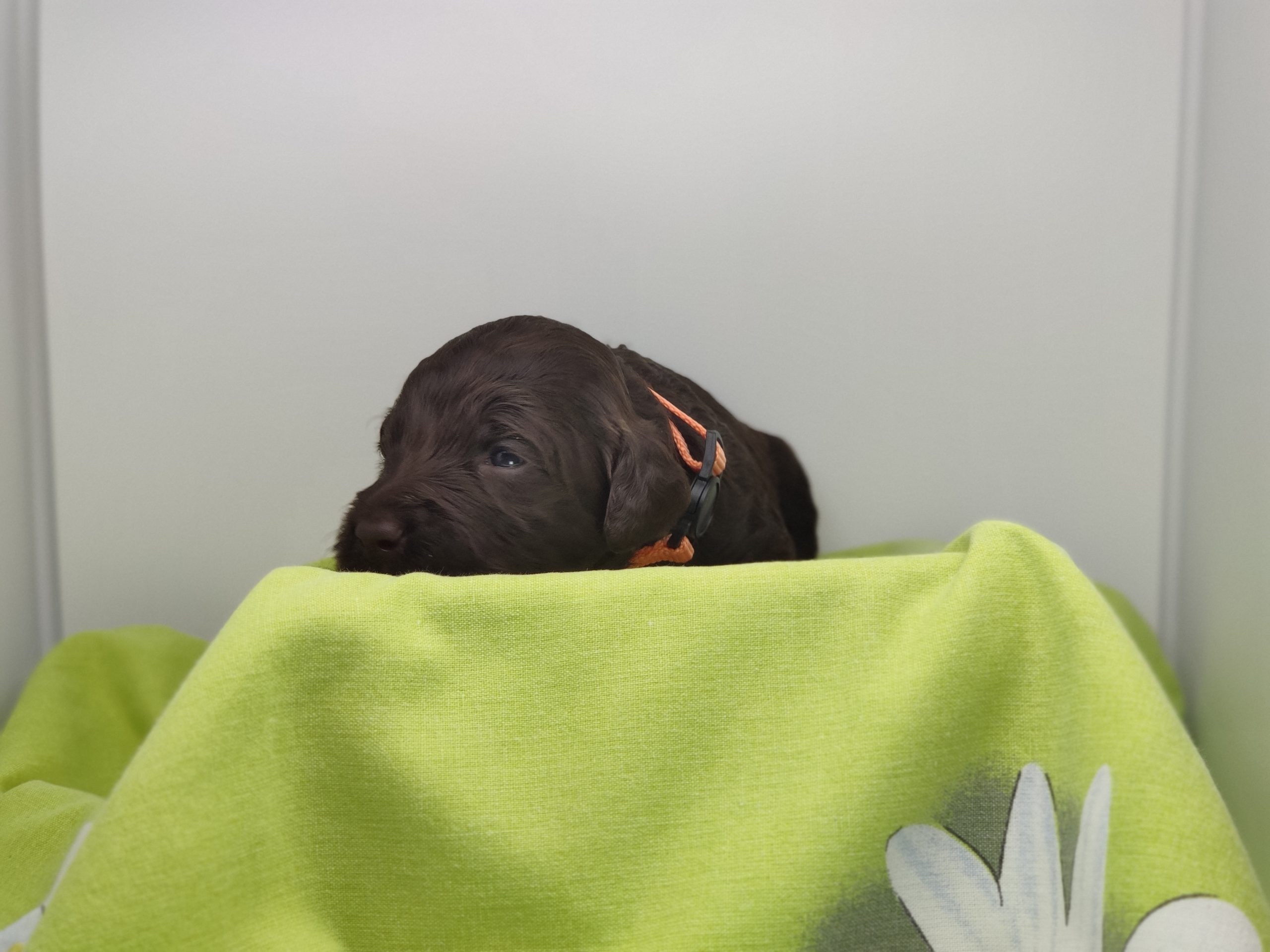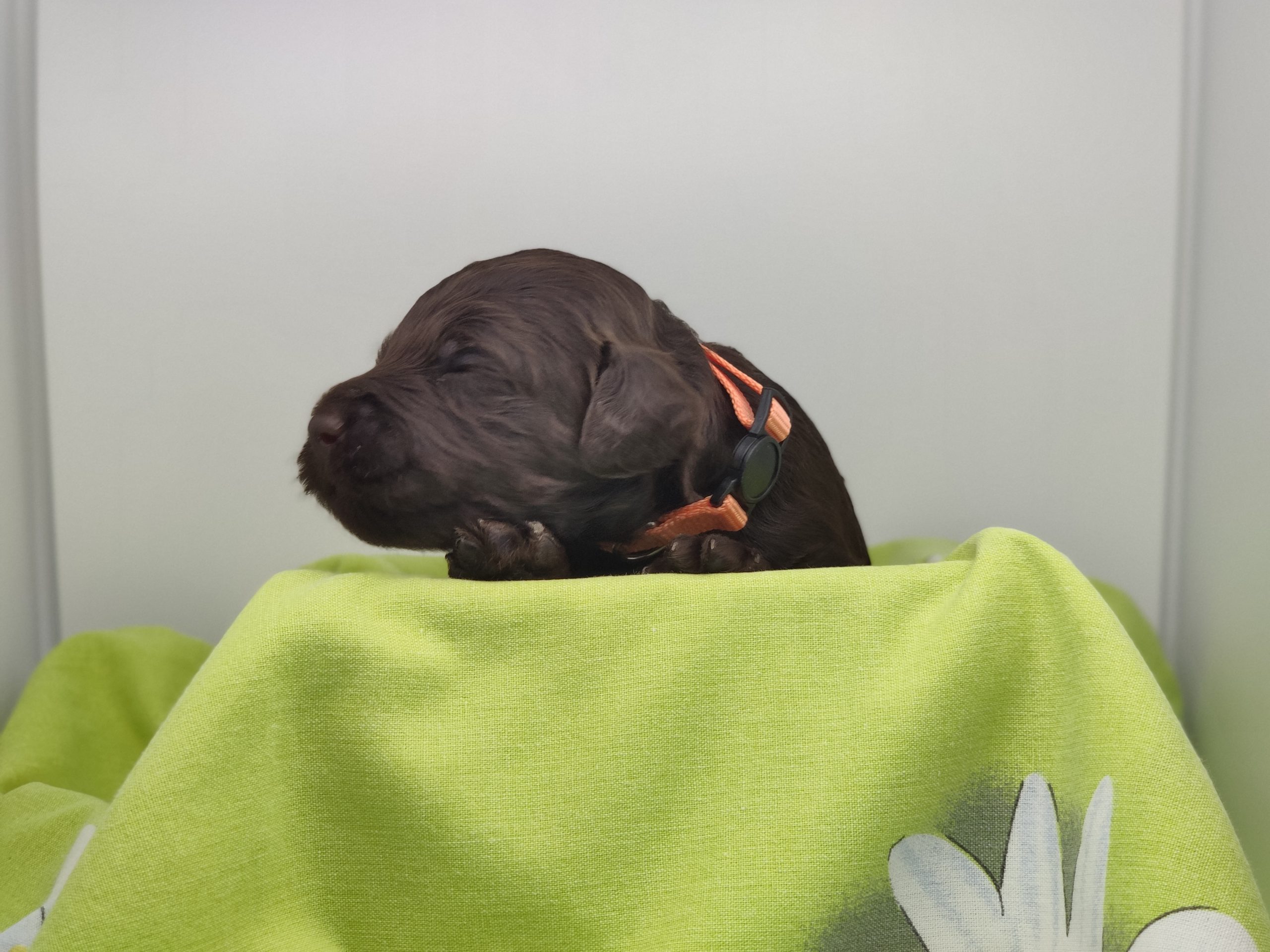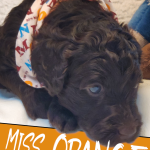 Ms Orange, a gorgeous dark brown puppy with an amazing wavy fleece coat, is a harmonious blend of playful energy and relaxed vibes. Her presence is a constant source of joy, brightening the days of those around her with her cheerful demeanour. Not only is she fun and easygoing, but Ms Orange is also remarkably intelligent; she picks up new commands and tricks with swift ease. Her quick learning ability, coupled with her joyful and laid-back nature, makes her a wonderful and engaging companion.