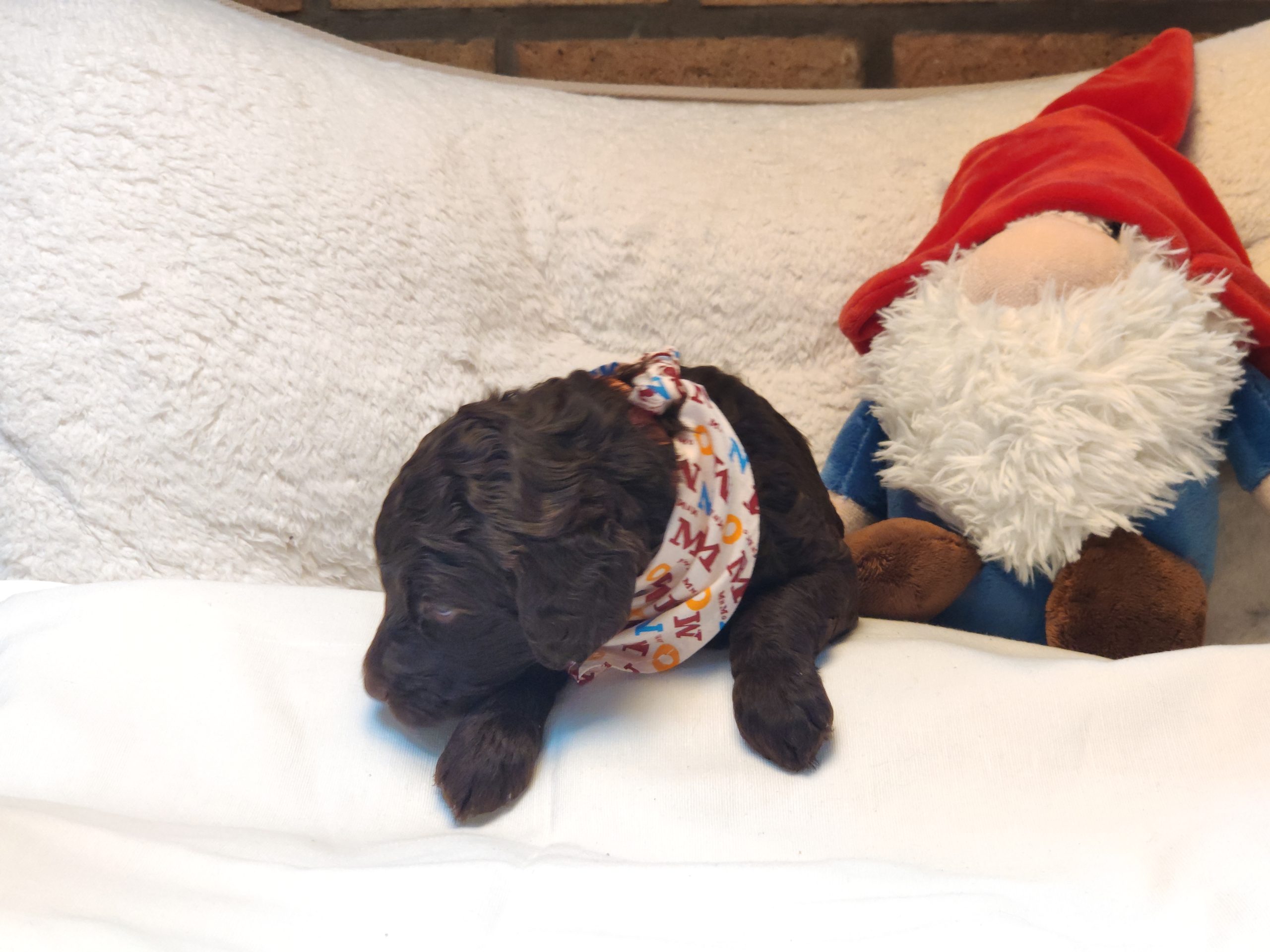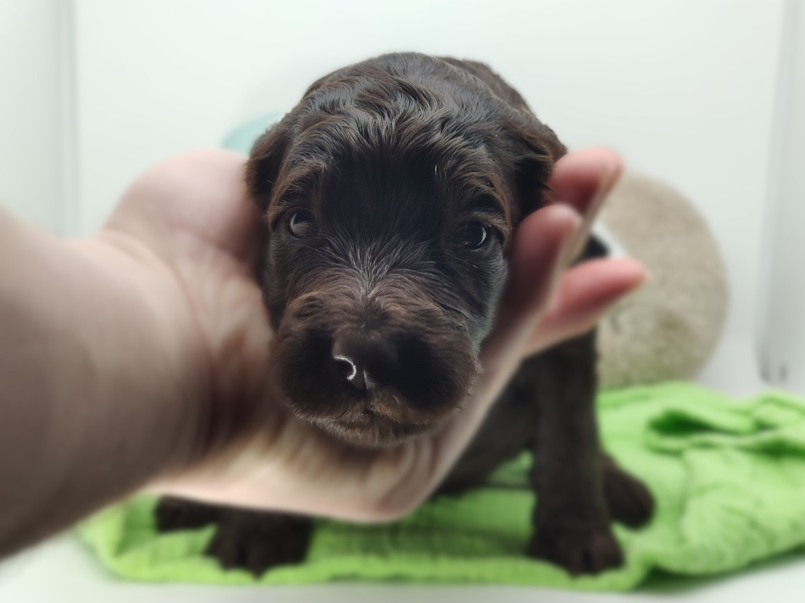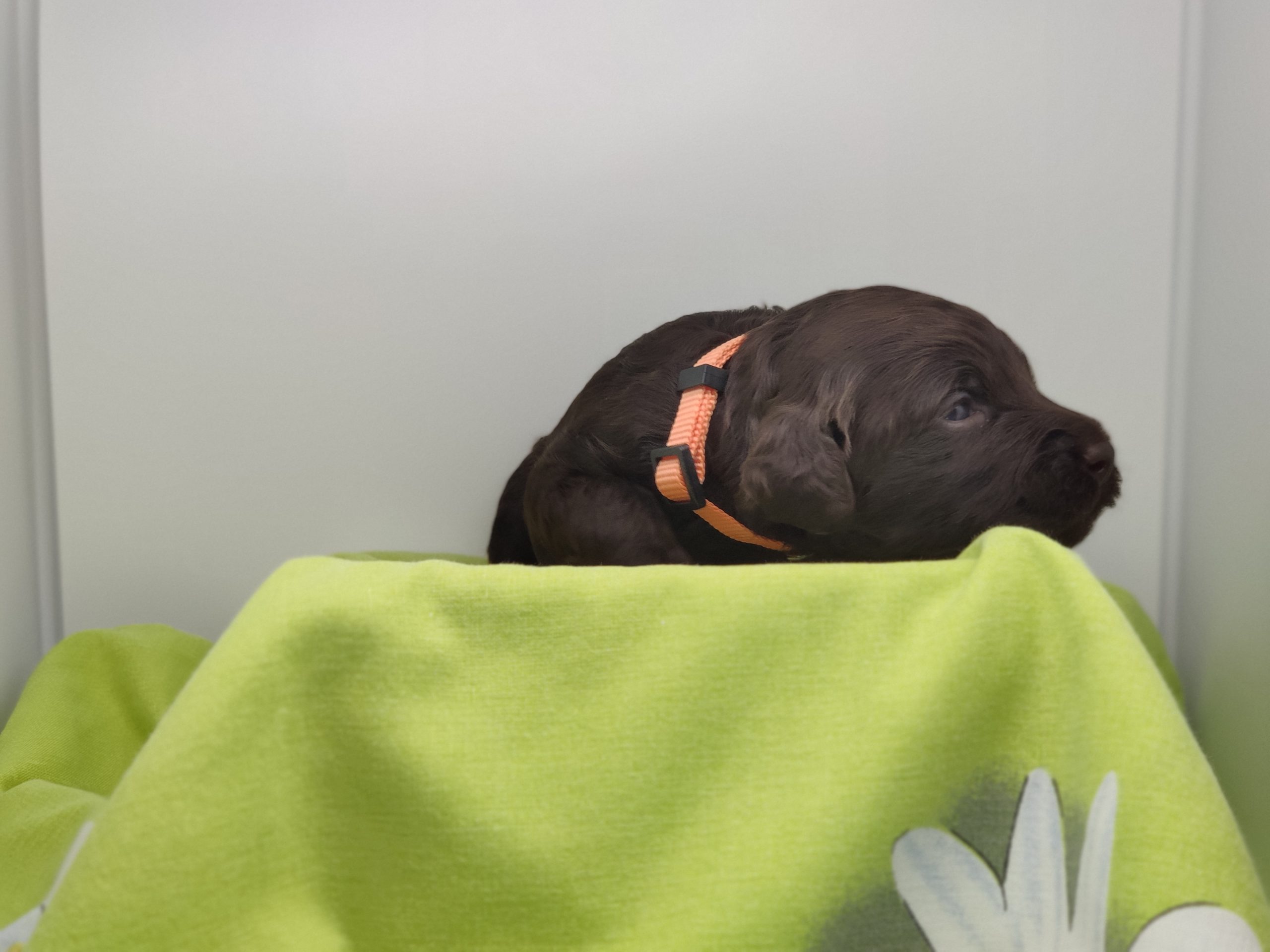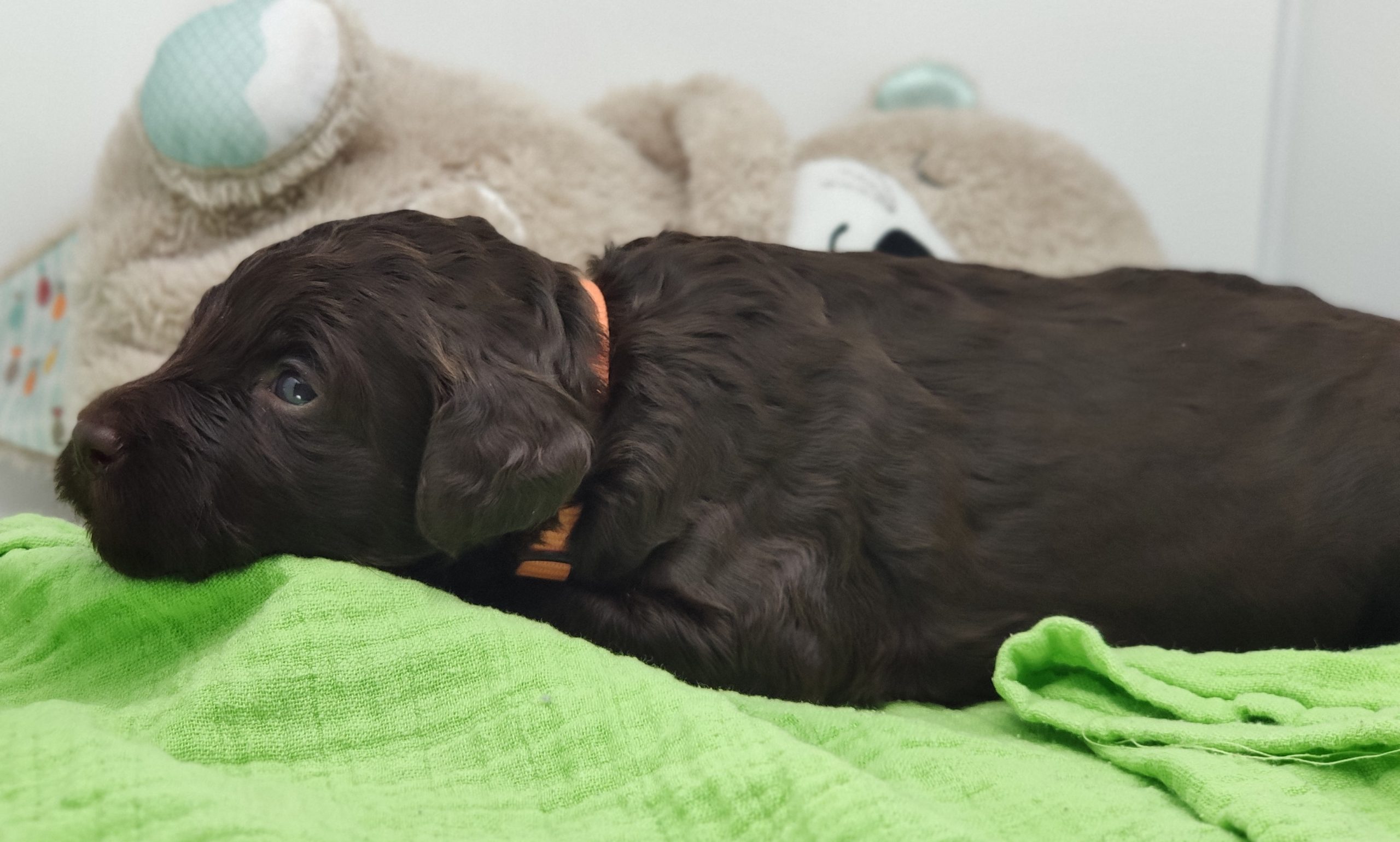Ms Orange, a gorgeous dark brown puppy with an amazing wavy fleece coat, is a harmonious blend of playful energy and relaxed vibes. Her presence is a constant source of joy, brightening the days of those around her with her cheerful demeanour. Not only is she fun and easygoing, but Ms Orange is also remarkably intelligent; she picks up new commands and tricks with swift ease. Her quick learning ability, coupled with her joyful and laid-back nature, makes her a wonderful and engaging companion.