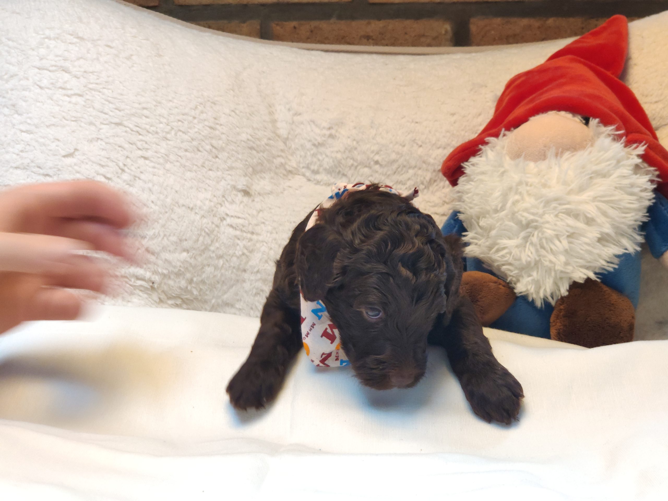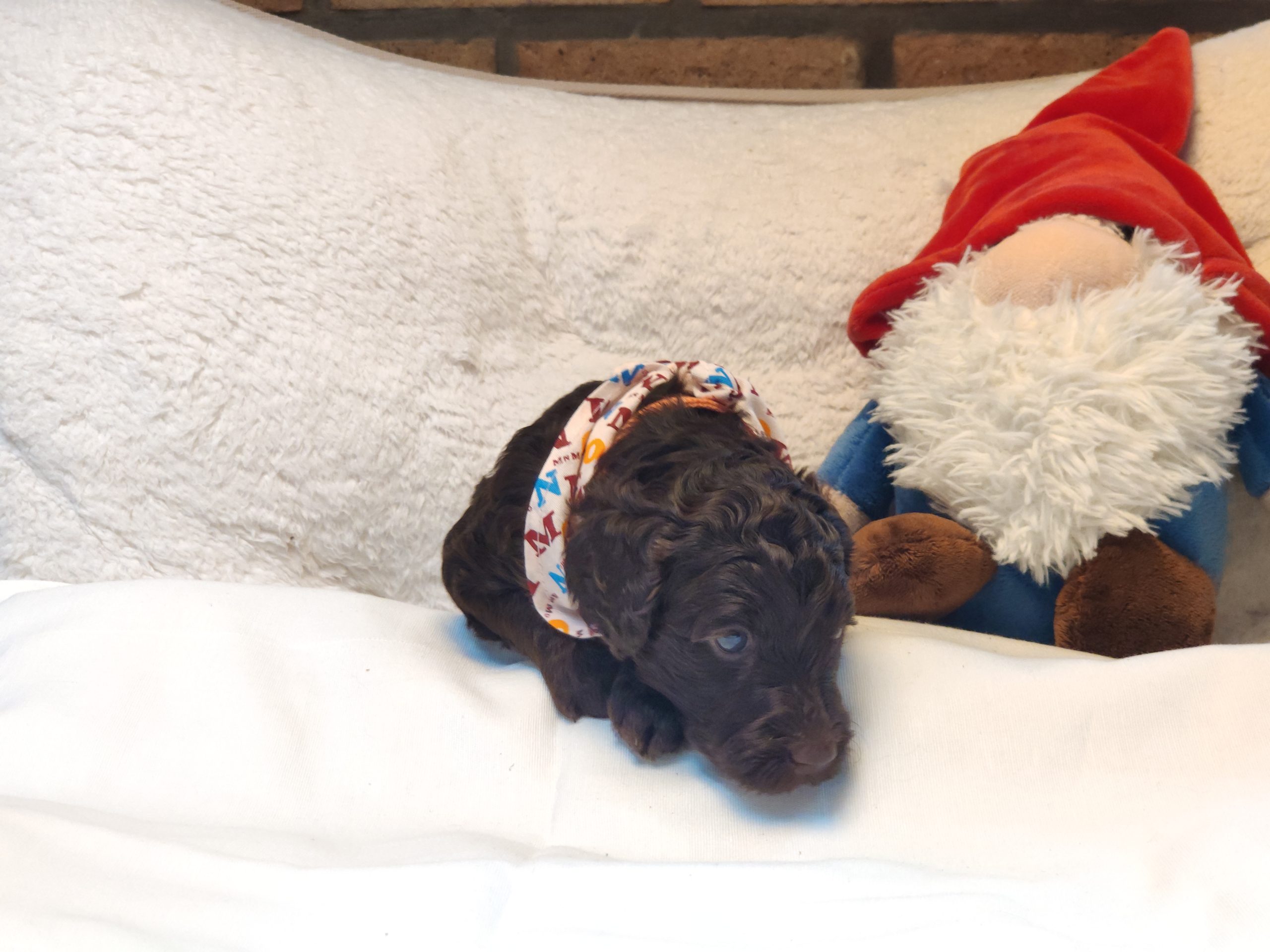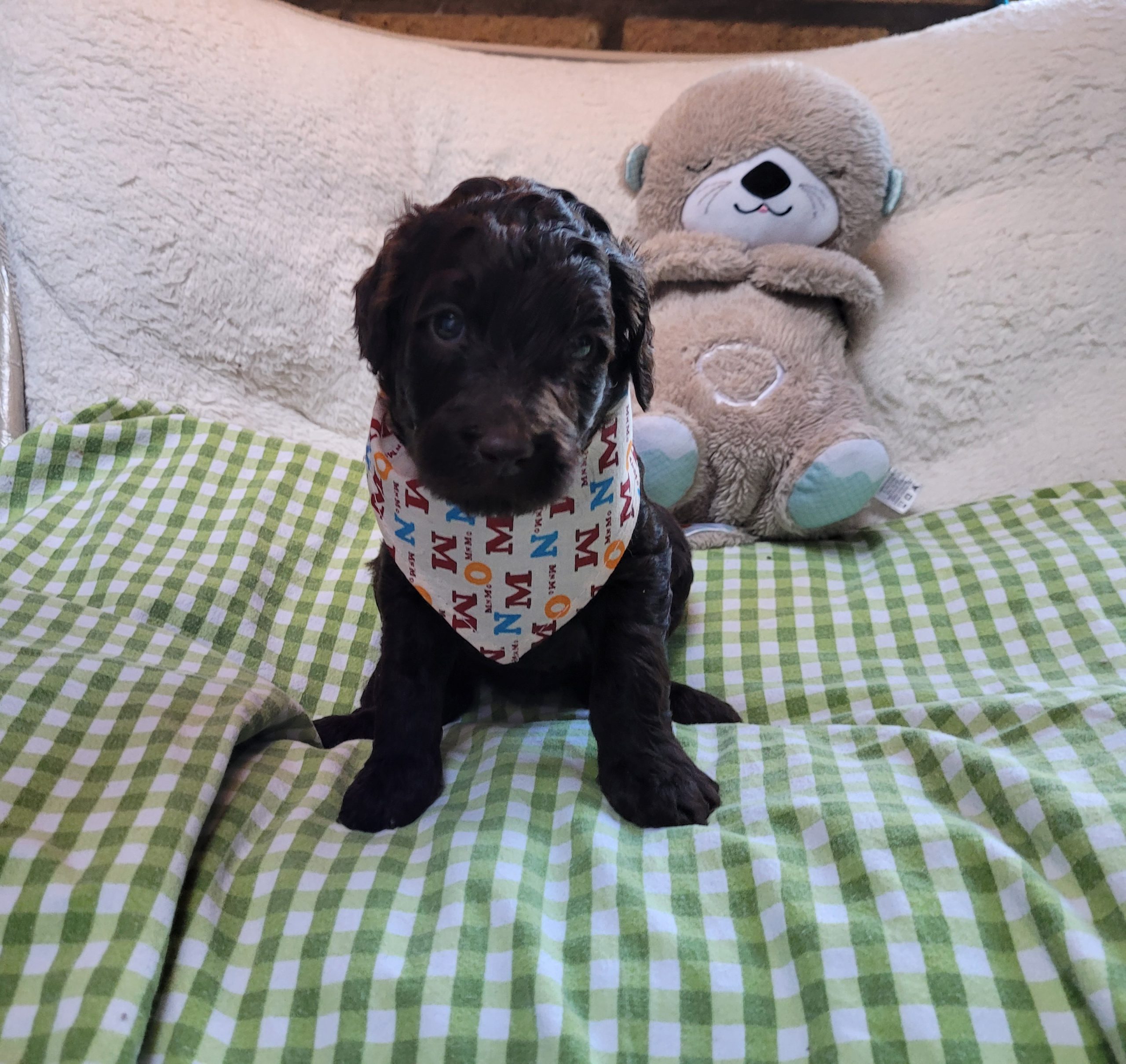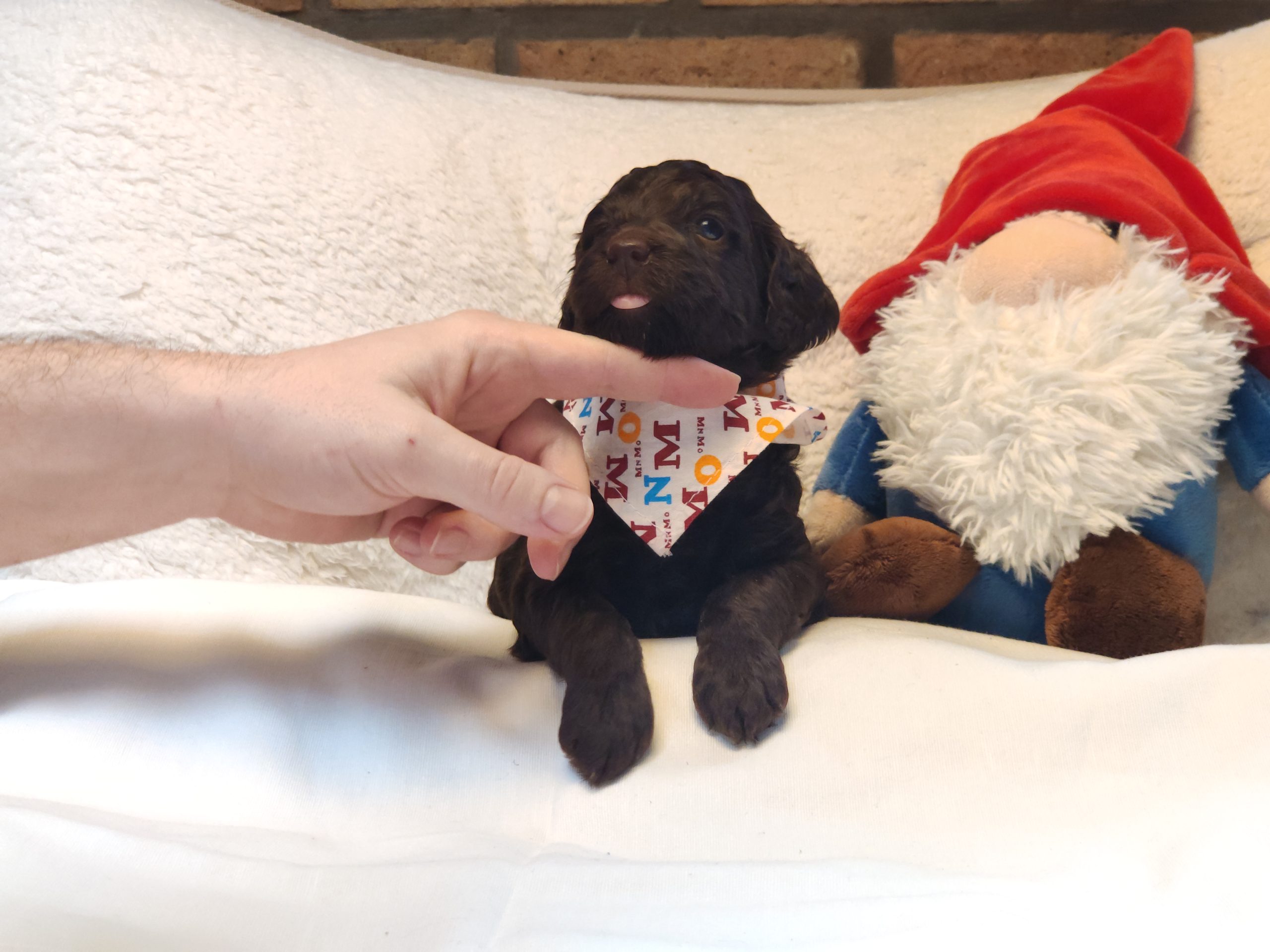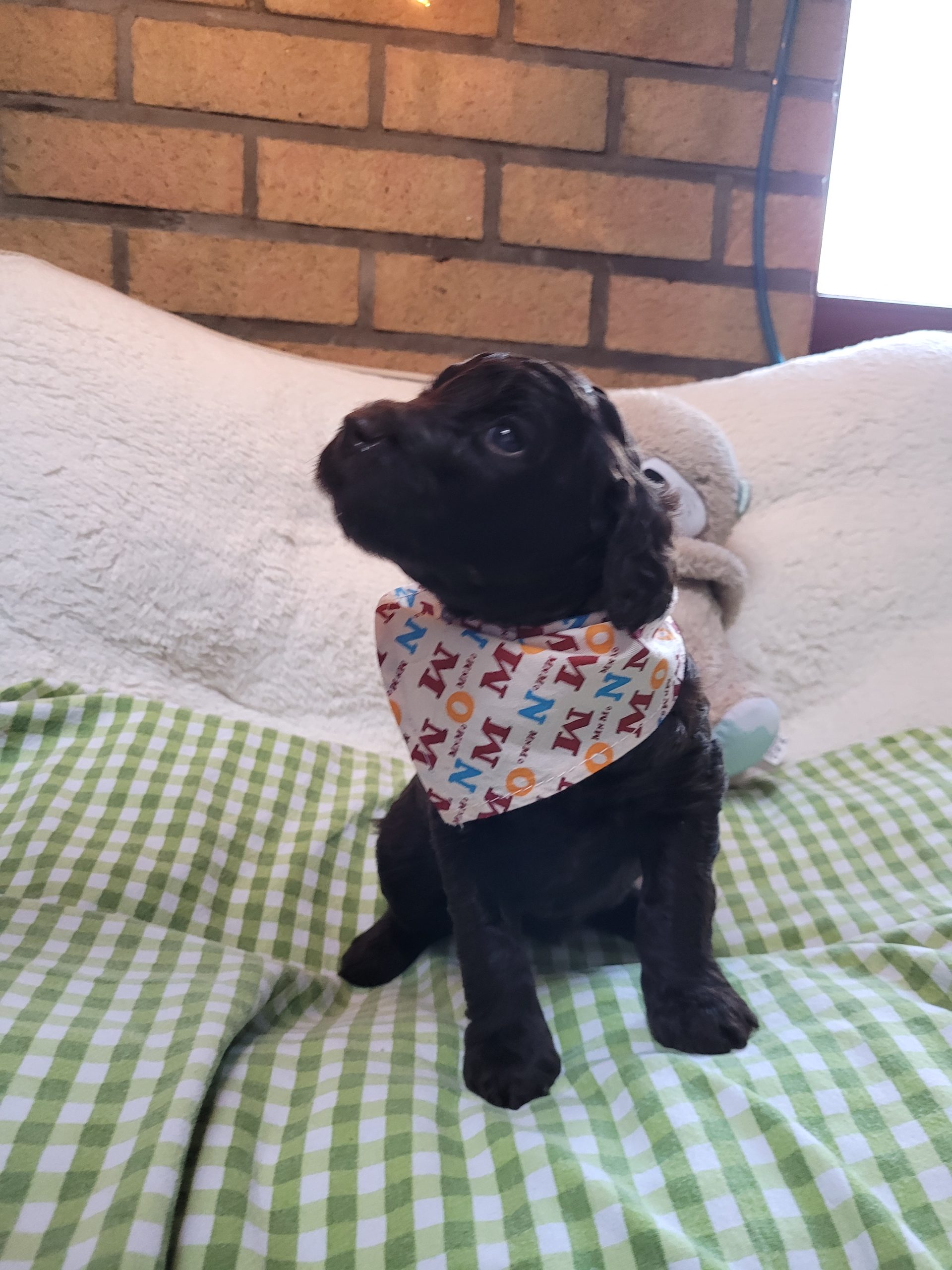 Ms Orange, a gorgeous dark brown puppy with an amazing wavy fleece coat, is a harmonious blend of playful energy and relaxed vibes. Her presence is a constant source of joy, brightening the days of those around her with her cheerful demeanour. Not only is she fun and easygoing, but Ms Orange is also remarkably intelligent; she picks up new commands and tricks with swift ease. Her quick learning ability, coupled with her joyful and laid-back nature, makes her a wonderful and engaging companion.