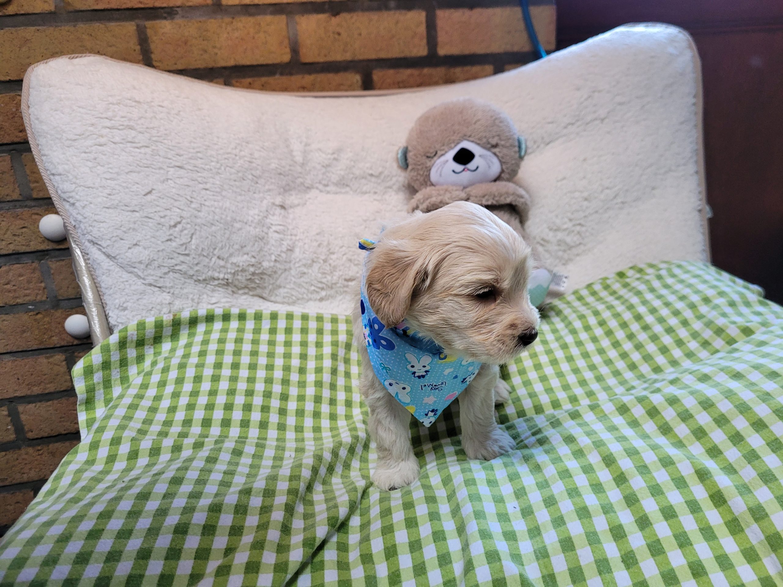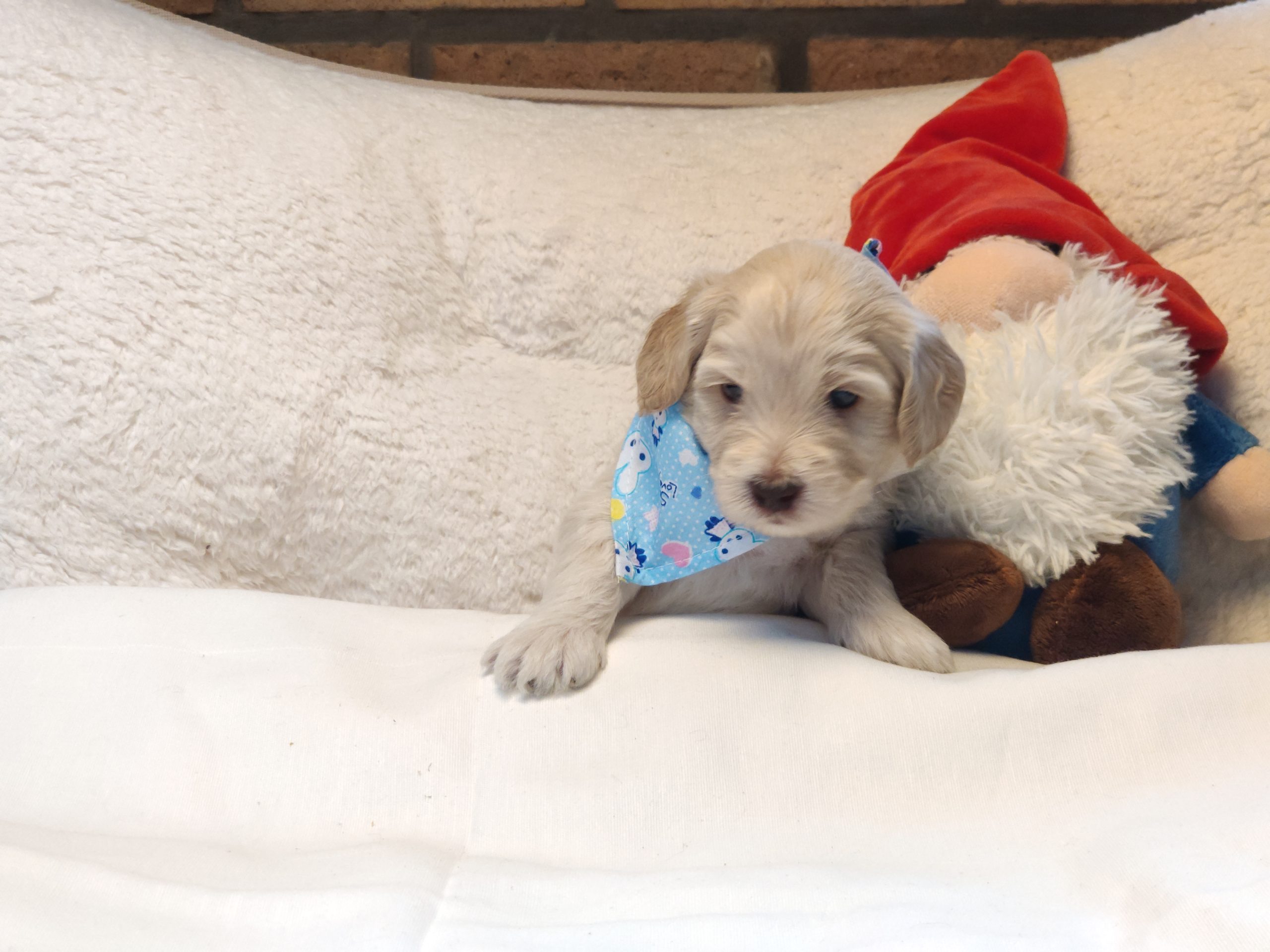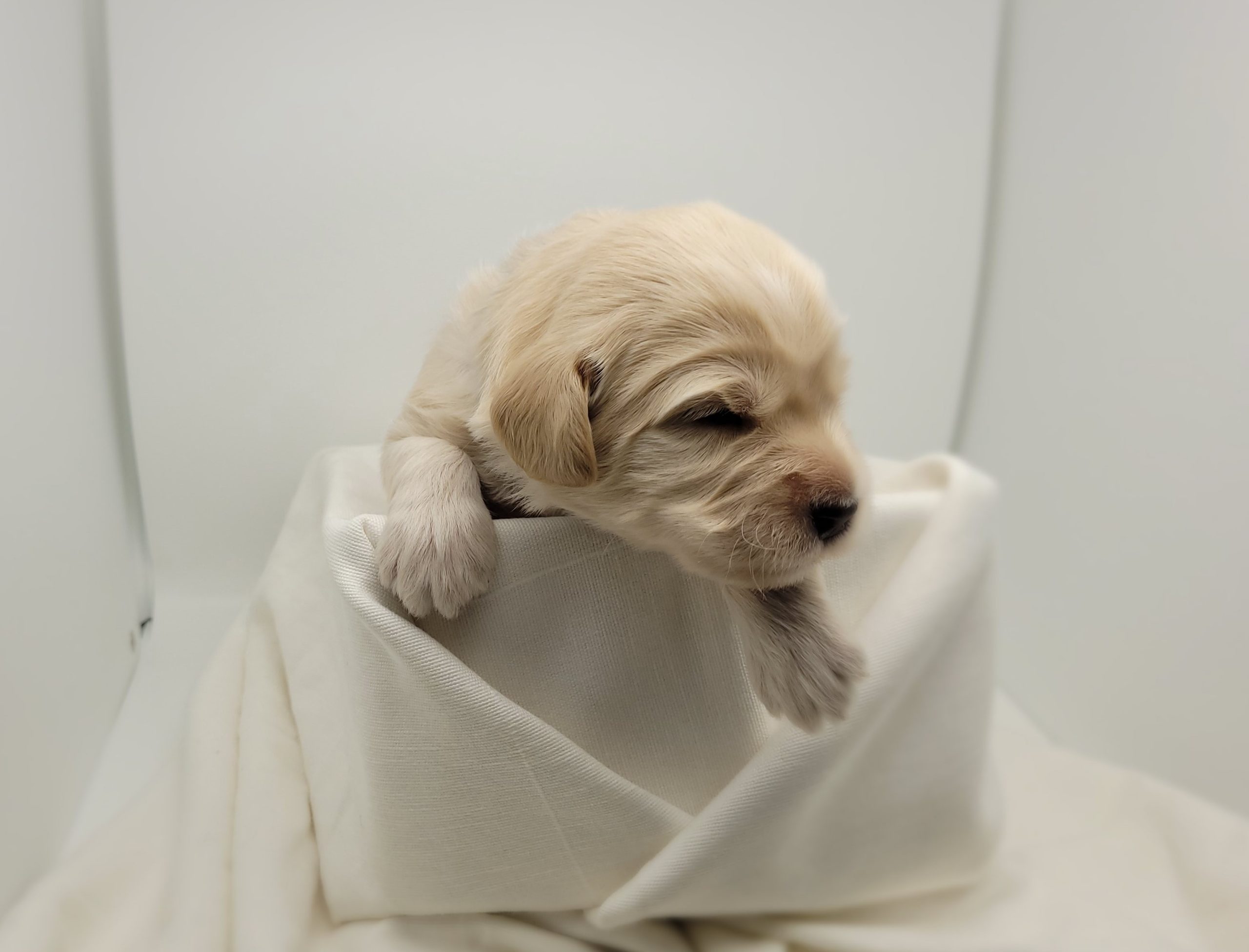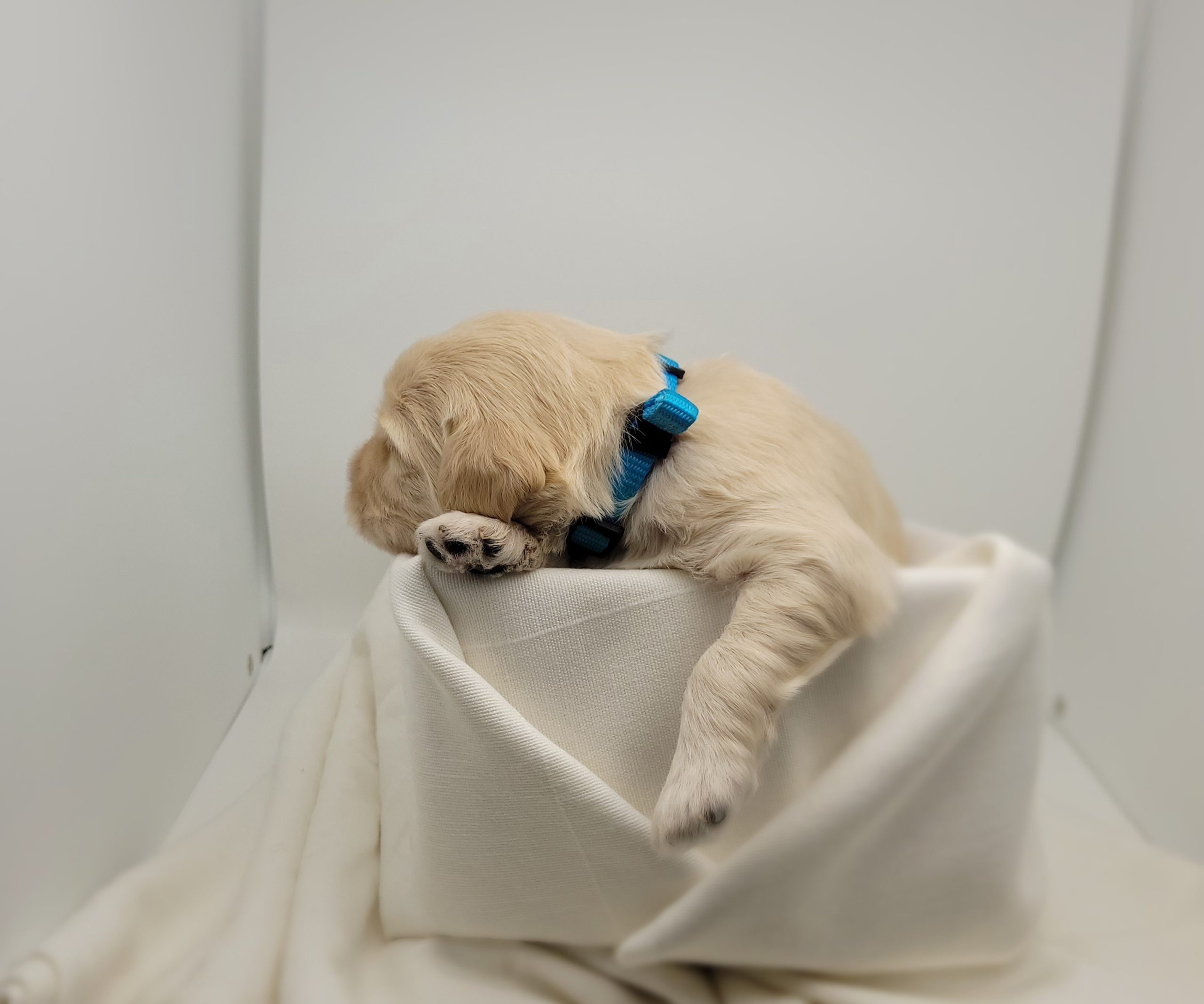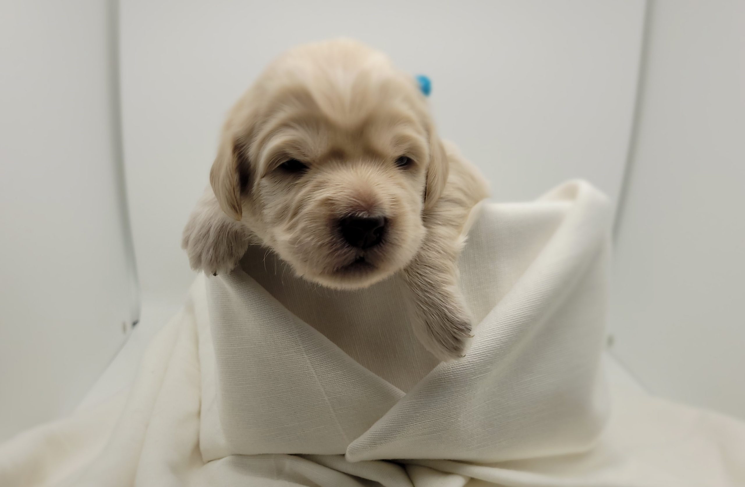 As the firstborn of the litter, Mr Blue carries a dignified air with his gorgeous cream-wavy coat and amazing white lashes. He is the epitome of calmness and cuddliness, paired beautifully with an undeniably brave heart. This combination makes him a fearless explorer, always ready to discover new corners of his world. Mr Blue has a deep affection for his people, ensuring that he forms strong, lasting bonds with those he loves. His serene yet courageous nature makes him a truly special companion. He is also a fast learner, eagerly embracing new challenges and rapidly assimilating new skills with ease.